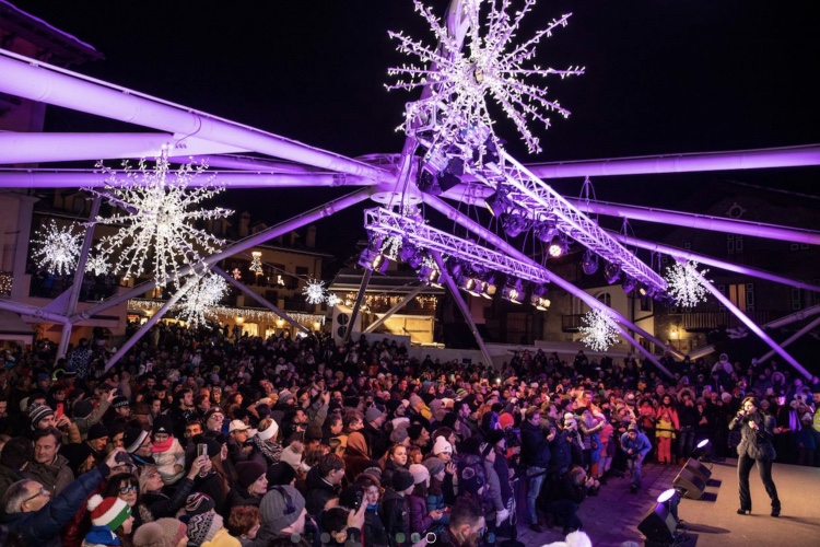 La piazza al Jardin de l'Ange è il cuore del capodanno di Courmayeur.