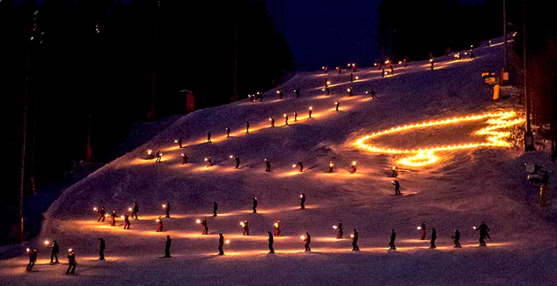 A Madonna di Campiglio, la Fiaccolata dei Maestri di Sci viene fatta il primo giorno dell'anno nuovo.