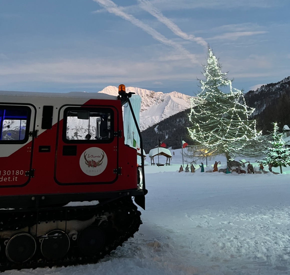 A Courmayeur il trasporto fino alla baita sarà effettuato con la motoslitta e il prezzo parte da 180€ a persona.