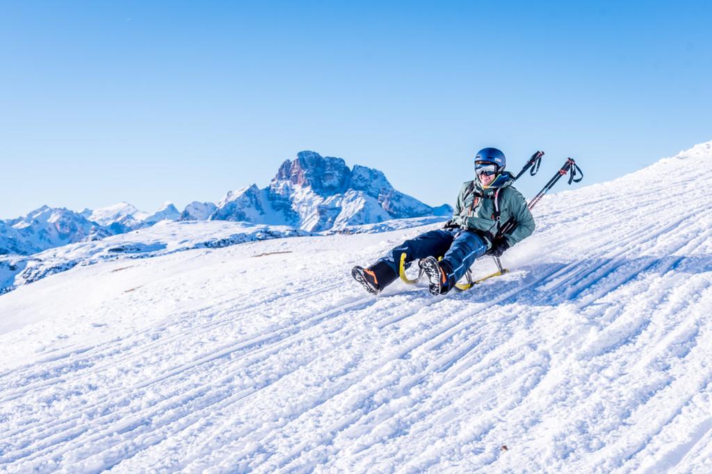 Una volta in cima potrai divertirti facendo la discesa con lo slittino. Chi preferisce può rientrare a Misurina anche in motoslitta o a piedi.