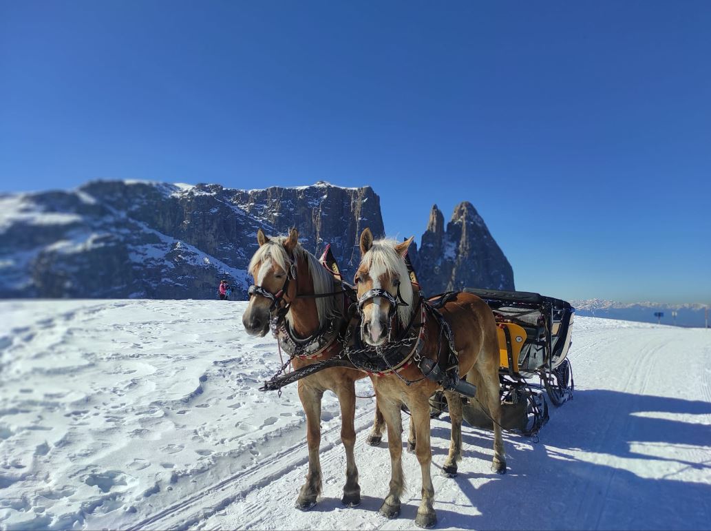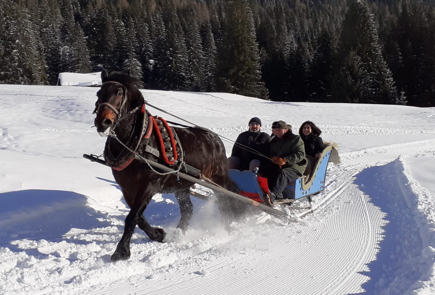 Idea perfetta per un'esperienza da vivere in famiglia o tra amici: un'uscita in slitta trainata da cavalli.