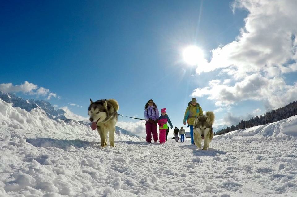 Per i veri amanti degli animali, questa ciaspolata con husky è un'idea perfetta. Farete dog trekking in compagnia di fantastici esemplari di Alaskan Malamute sulle Dolomiti del Brenta.