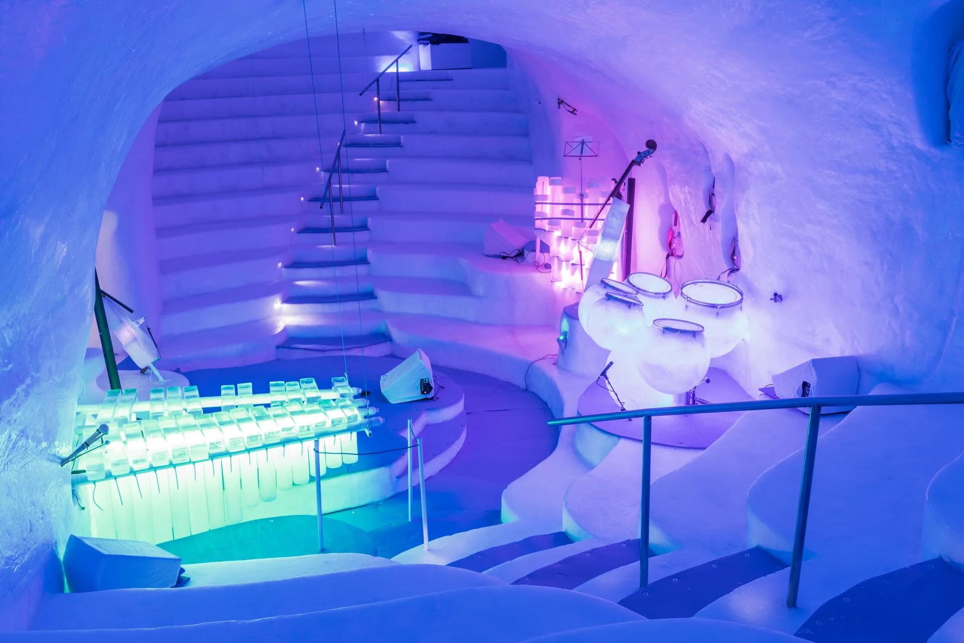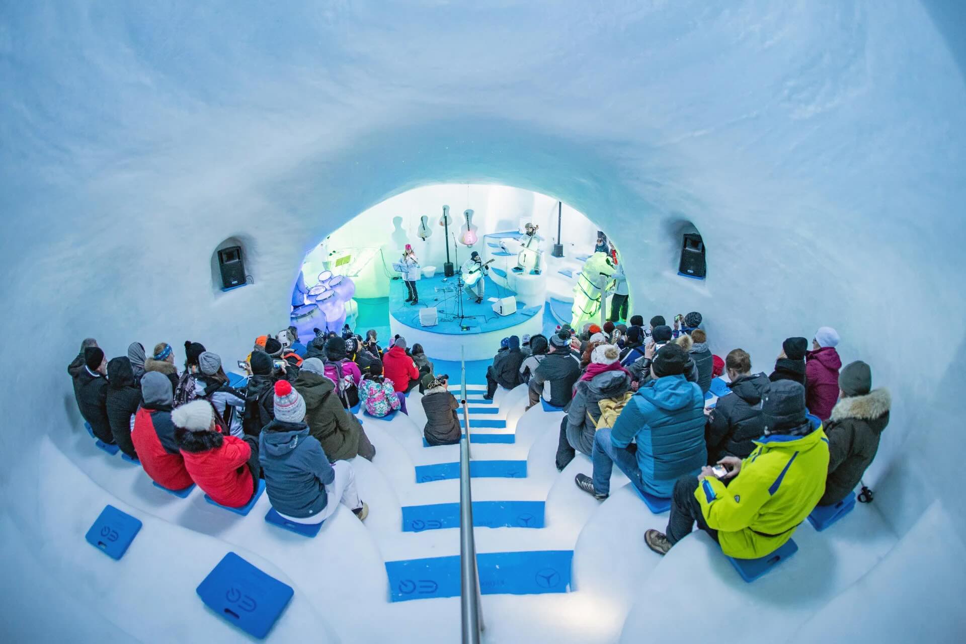 In un vero igloo i musicisti suoneranno i particolari strumenti scolpiti nel ghiaccio e, da gennaio a marzo, si potrà assistere a numerosi spettacoli dal vivo tutti diversi.
