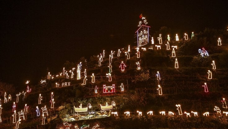 Si estende per il paese e le colline circostanti, presentando centinaia di figure luminose, tra cui contadini, pastori, angeli e cammelli a grandezza naturale. Realizzate con materiali riciclati, queste figure sono illuminate da oltre 15.000 lampadine multicolori alimentate da un impianto fotovoltaico. Il profilo luminoso della capanna della Natività domina la sommità della collina, vegliando su Manarola.