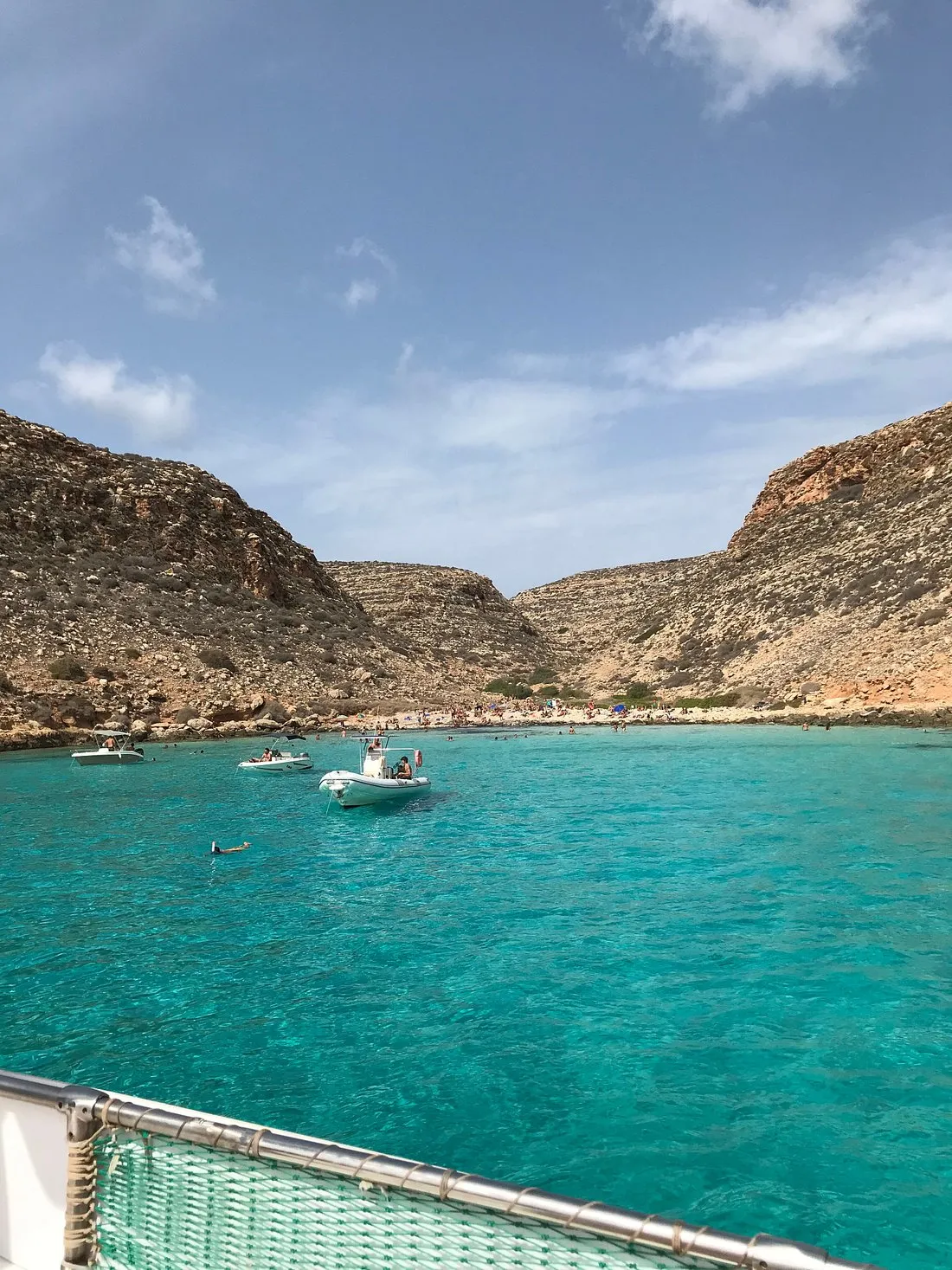 L'escursione in barca è un'esperienza piacevole che combina la bellezza della natura marina di Lampedusa con il piacere di rilassarsi, godersi l'isola in barca e gustare prelibatezze in un ambiente suggestivo.