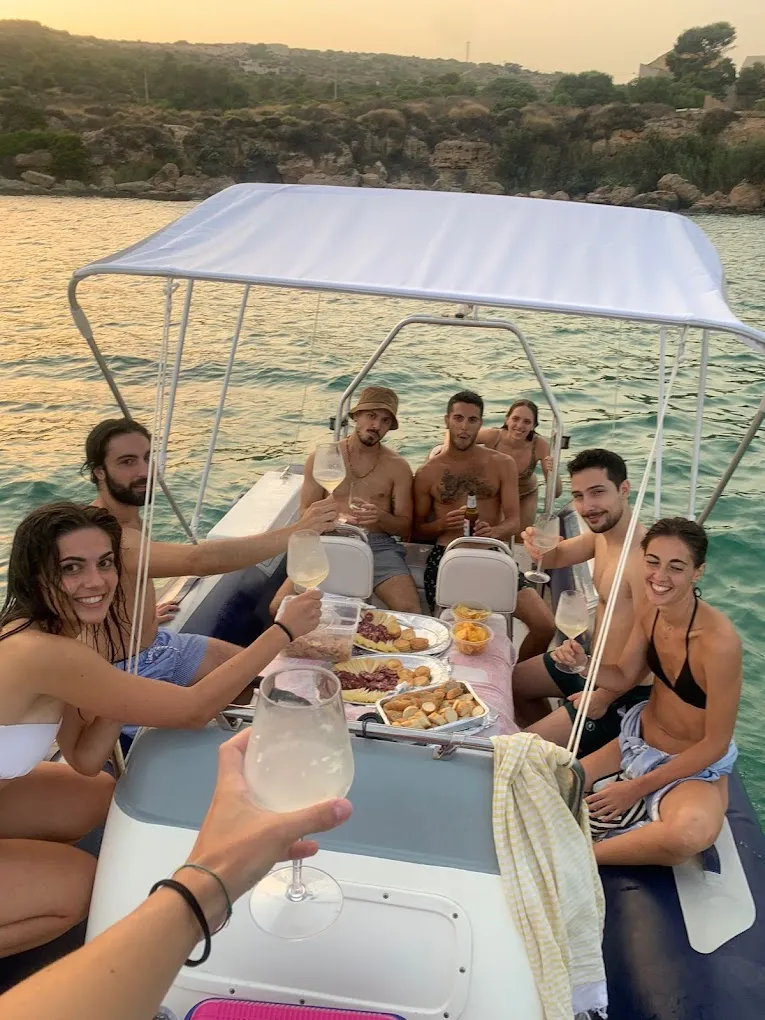 Abbiamo fatto una escursione nel tardo pomeriggio per godere della tramonto dal mare, il tutto accompagnato da abbondante aperitivo! Durante il ritorno abbiamo visto alcuni delfini giocare poco lontano dal gom...altro