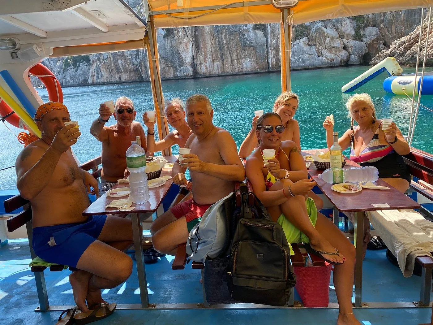 Dopo la sosta bagno vi verrà offerto un gustoso aperitivo in barca.