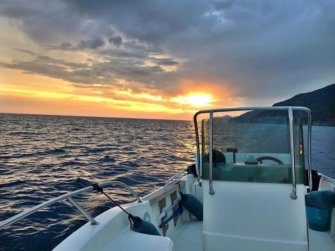 Il tramonto è il momento un po' più romantico per andare a fare un giro in barca alle 5 Terre e per gustare un delizioso aperitivo. Quando il mare è calmo, in questo periodo della giornata si possono vedere e, se fortunati, toccare i delfini che ci sono nella riserva naturale delle Cinque Terre.