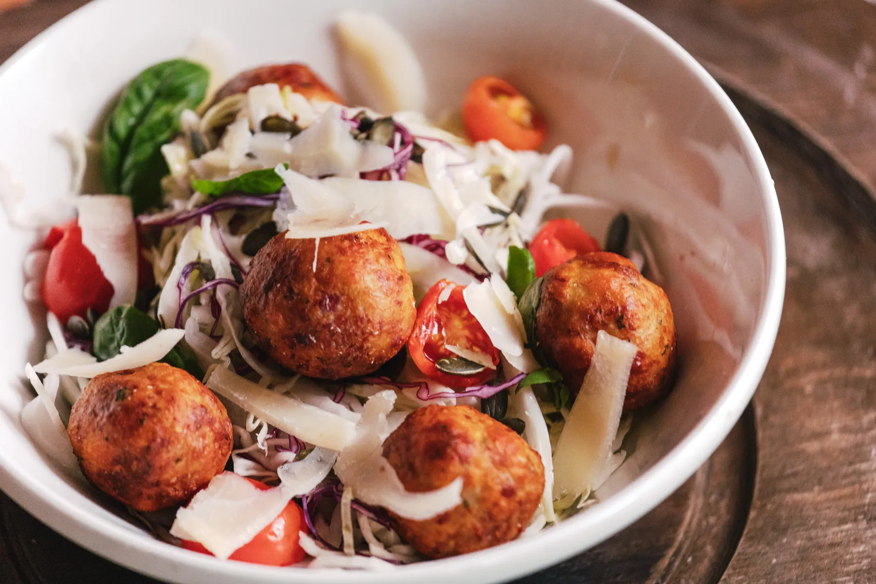 - Polpettine di Grigio Alpina con maionese al pistacchio e cipolla rossa in agrodolce
