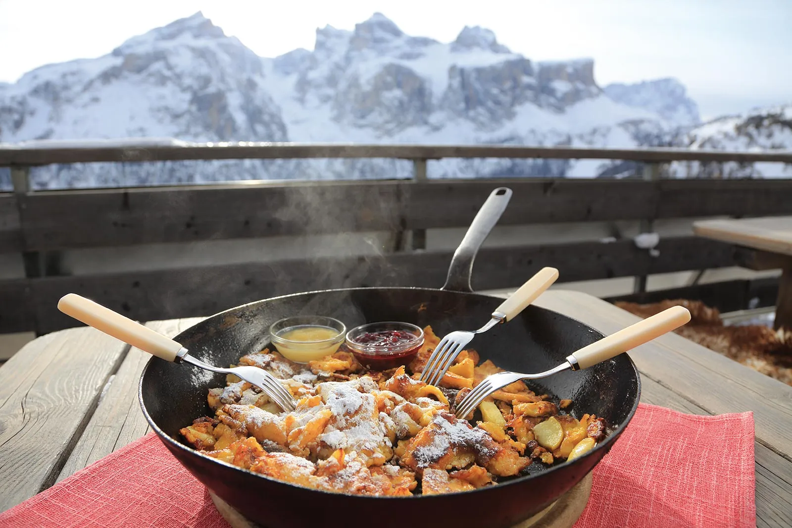 Cena in quota al Rifugio Col Pradat a Colfosco nel comune di Corvara in Badia, in Provincia di Bolzano. Con una bellissima vista panoramica sull'Alta Badia e le Dolomiti, potrete gustare i sapori della cucina altoatesina.
