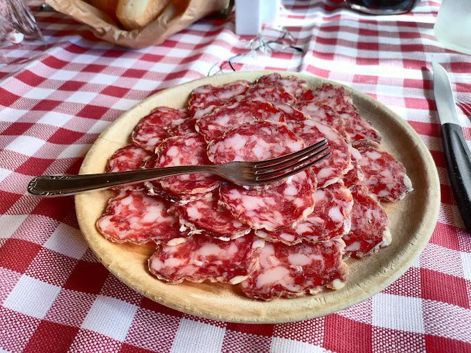 - Antipasti: salame, pancetta, lardo, frittate alle verdure e cetrioli in agrodolce.