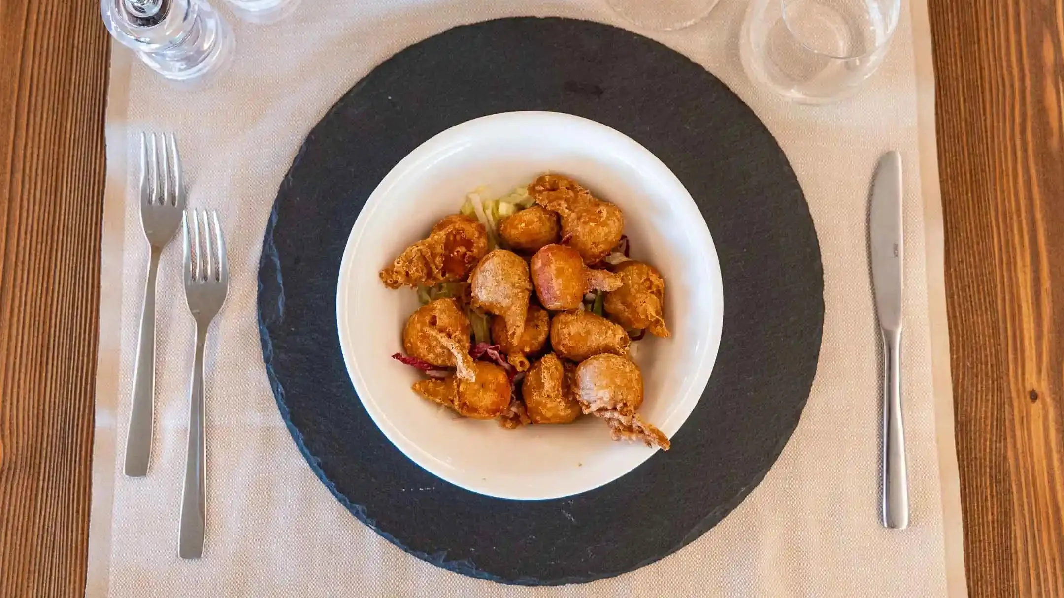 - Bresaola della Valtellina con sciatt su letto di cicorino.
