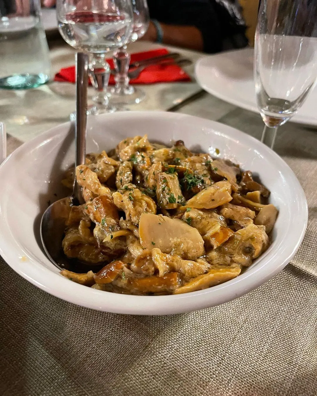 Tra i piatti potrete trovare piatti tipici come la polenta con i funghi, lo stinco o paste fresche con prodotti locali.