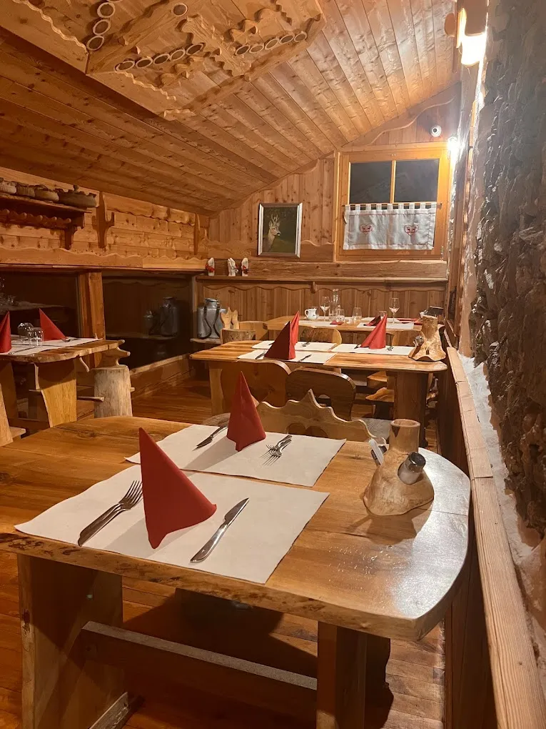 La baita Magnabò, con i suoi mobili in legno e le pareti in pietra, è capace di creare l'ambiente perfetto per assaporare la cucina trentina.