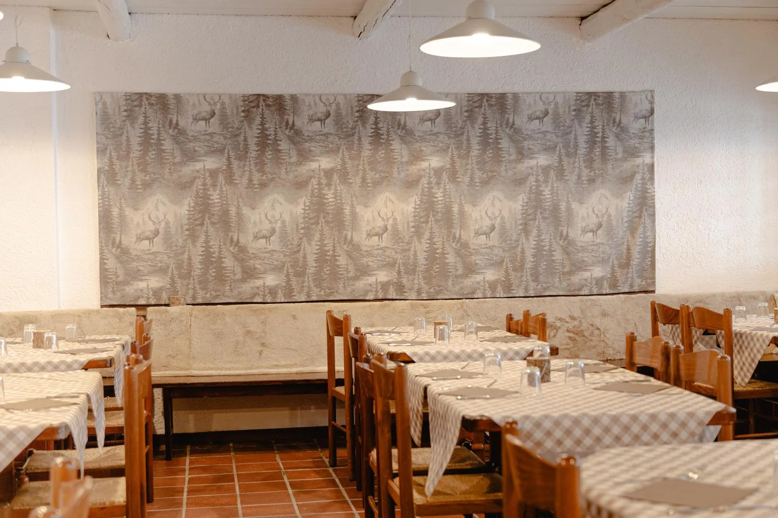 La struttura offre un menù di quattro portate (antipasto, primo, secondo e dolce) stabilite in base ai prodotti locali disponibili. Sono poi compresi acqua, vino sfuso e caffè.