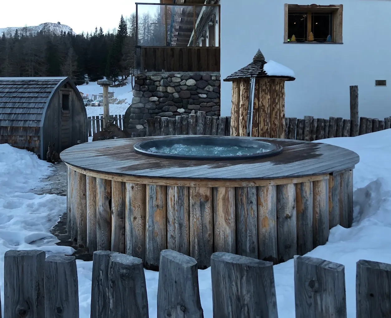 Il rifugio è anche dotato di una spa all'aperto con sauna, vasca idromassaggio e percorso Sensorial Kneipp. Per chi cerca un momento di relax con vista sulle Dolomiti è possibile aggiungere l'ingresso prima di cena. Vi verranno forniti accappatoio, telo per la sauna e ciabatte.