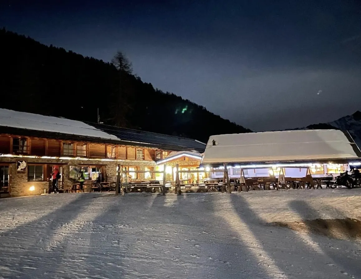 Concedetevi una cena in rifugio con trasporto su gatto delle nevi in Val di Pejo tra le montagne del Trentino.