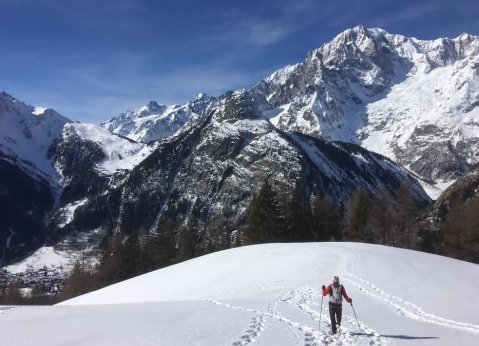 Una ciaspolata di 4 ore sulle montagne nei pressi di Courmayeur, nelle località più belle della Valle d'Aosta. Le uscite con le ciaspole sono organizzate con una guida escursionistica naturalistica, esperta della zona. in totale sicurezza per un massimo 25 persone.