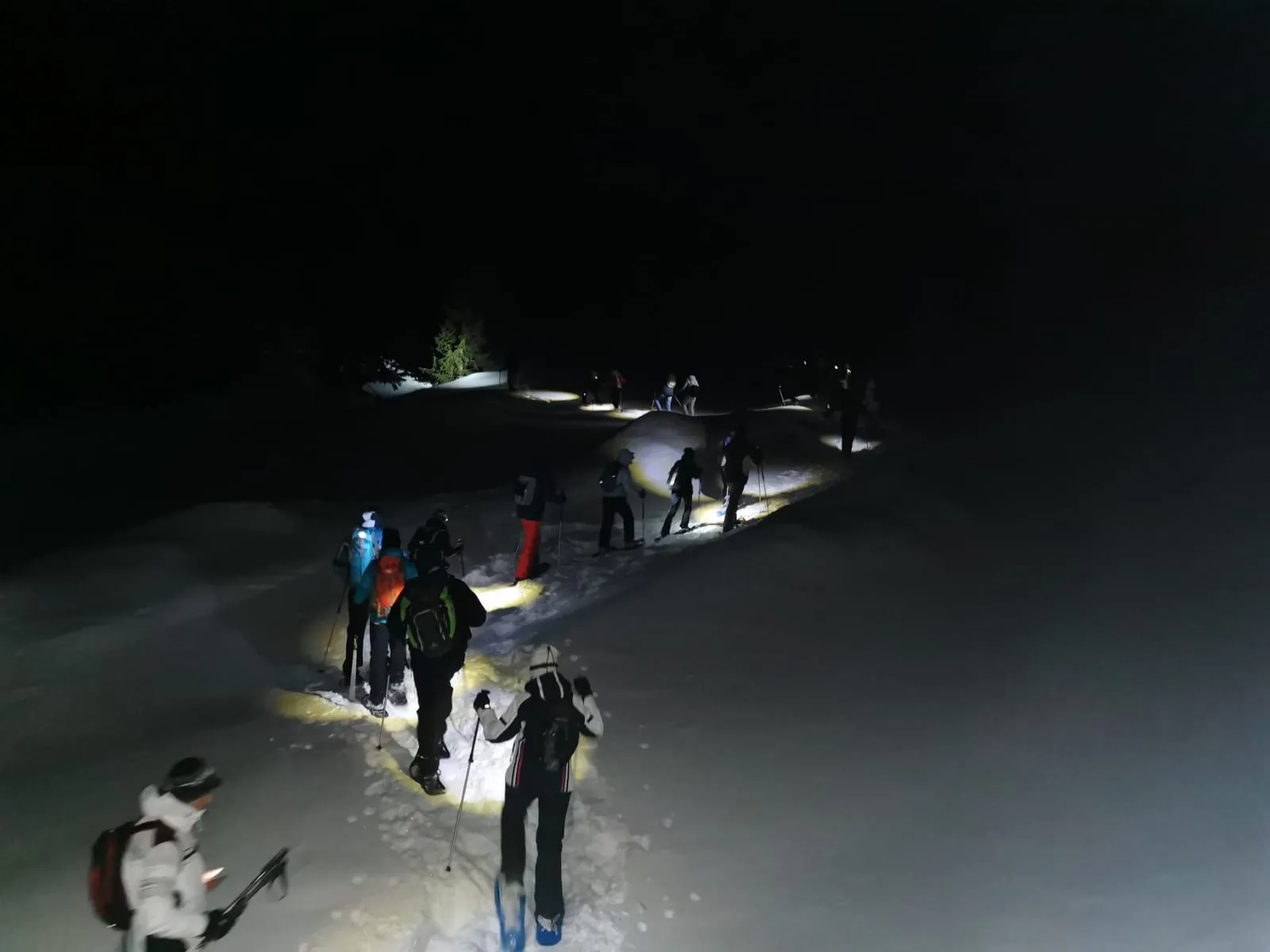 L’attività prevede risalita in motoslitta/gatto delle nevi, seguita da una suggestiva ciaspolata notturna con le luci frontali a cui segue una cena in rifugio dove poter assaporare i piatti tipici del Trentino con una discesa in motoslitta o gatto delle nevi in base alla location. Gli itinerari variano ogni settimana.