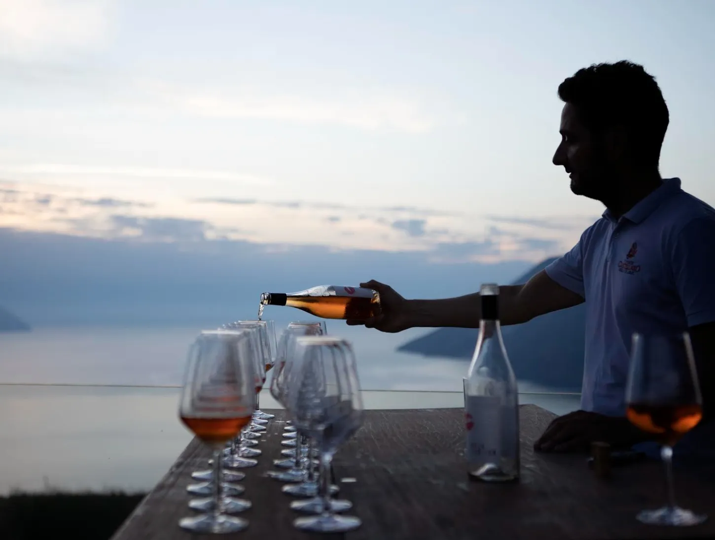 La degustazione al tramonto è accompagnata da biscottini artigianali.