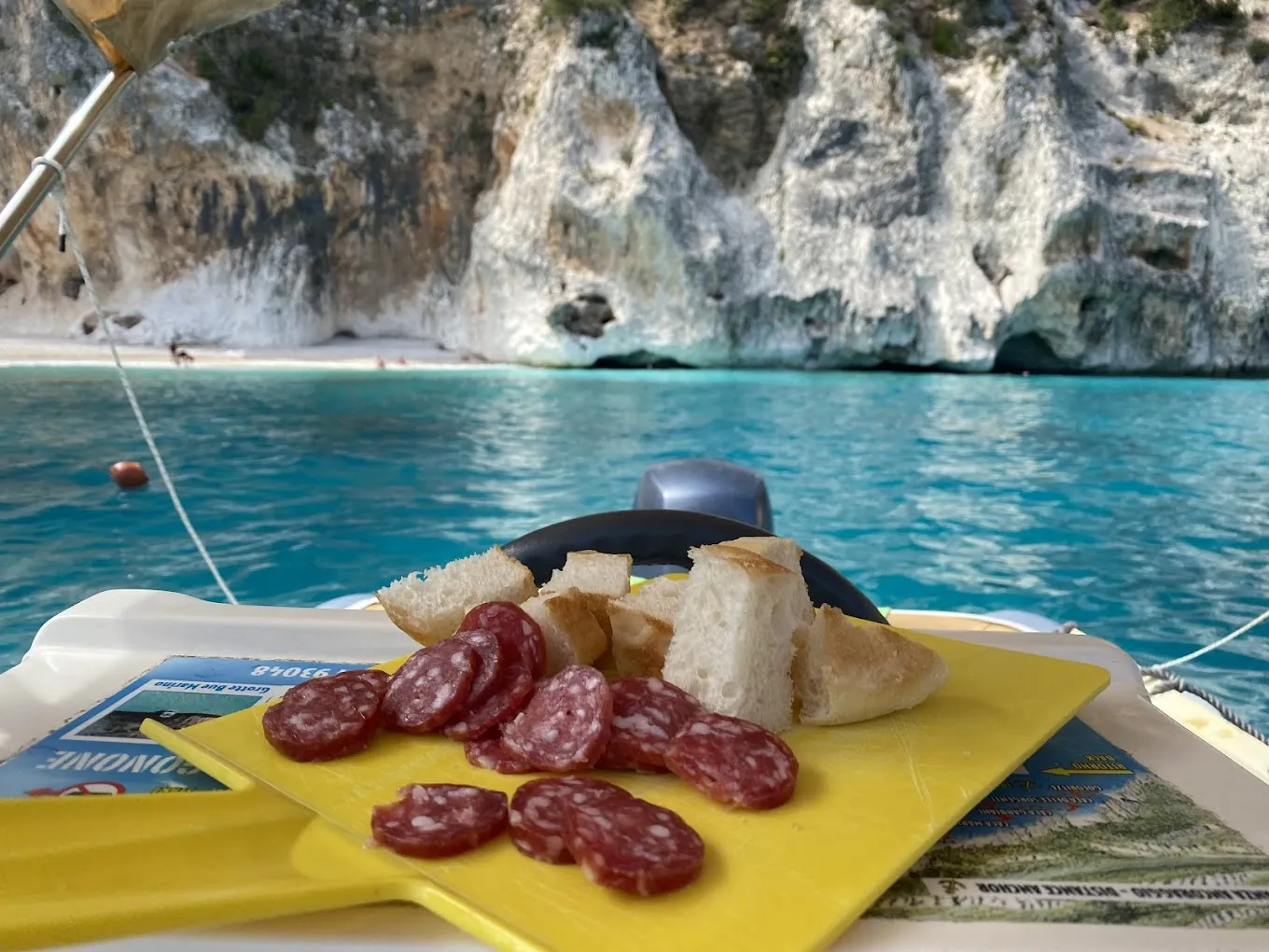 Imbarcatevi in un'escursione nel Golfo di Orosei e gustatevi un aperitivo a bordo di prodotti tipici con salumi locali accompagnato dalla musica.
