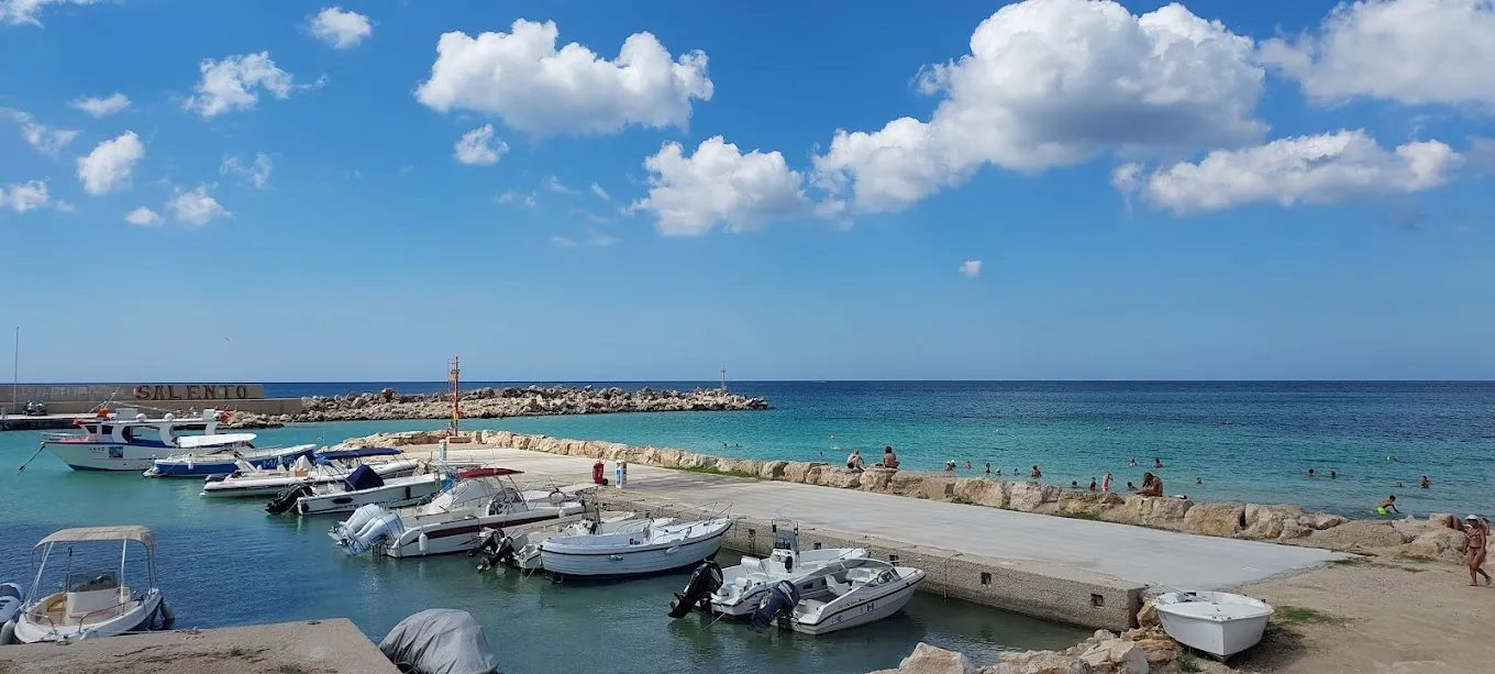 Dopo la partenza dal porto di Torre Vado, potrai ammirare le spiagge delle marine di Salve e la villa che un tempo era una torre costiera nella Marina di San Gregorio. Successivamente, attraverserai la Marina di Felloniche, situata in un piccolo golfo con un fondale verde smeraldo.