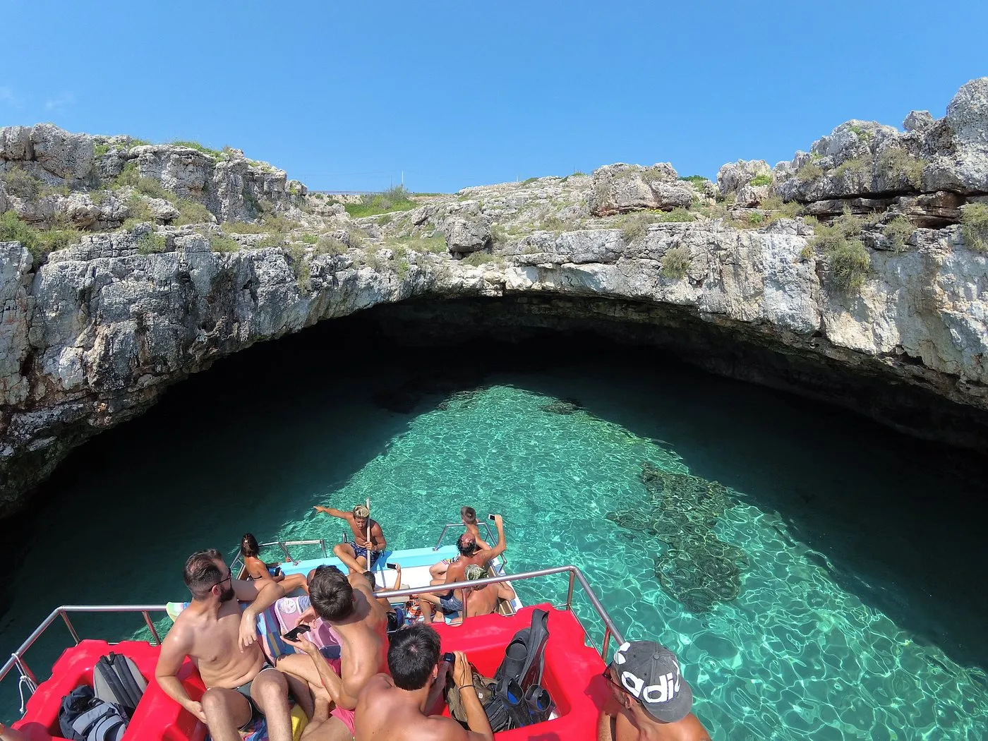 L'escursione in barca da Torre Vado nel basso Salento offre un tour di 4 ore per visitare le grotte di Santa Maria di Leuca, con due soste per il bagno e un aperitivo con prodotti tipici.