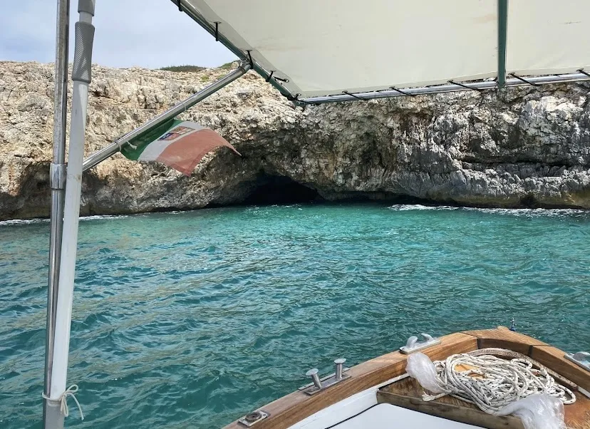 La navigazione avverrà su entrambi i versanti, ionico e adriatico e vi permetterà di visitare le grotte più belle e sostare nei punti migliori per tuffarvi in acqua e osservare i fodnali marini grazie all'attrezzatura da snorkeling presente a bordo.