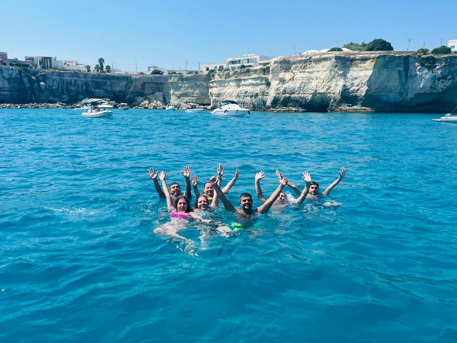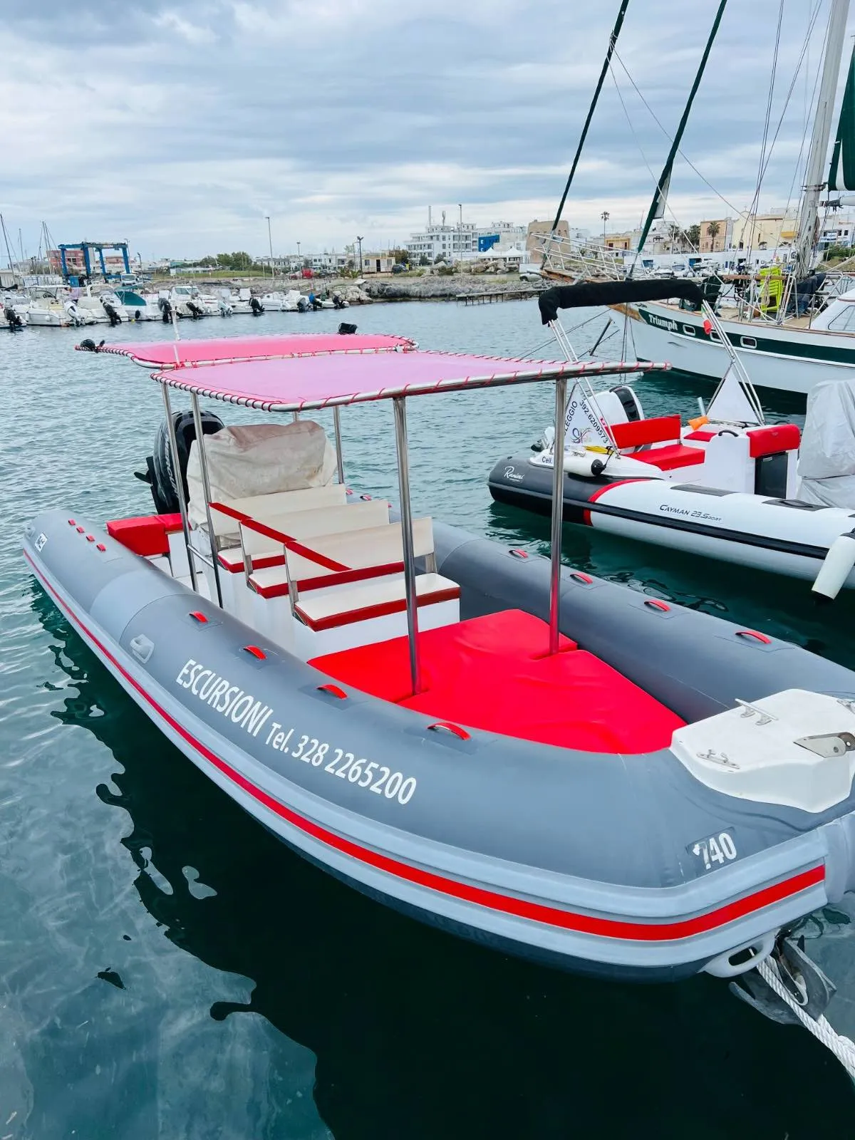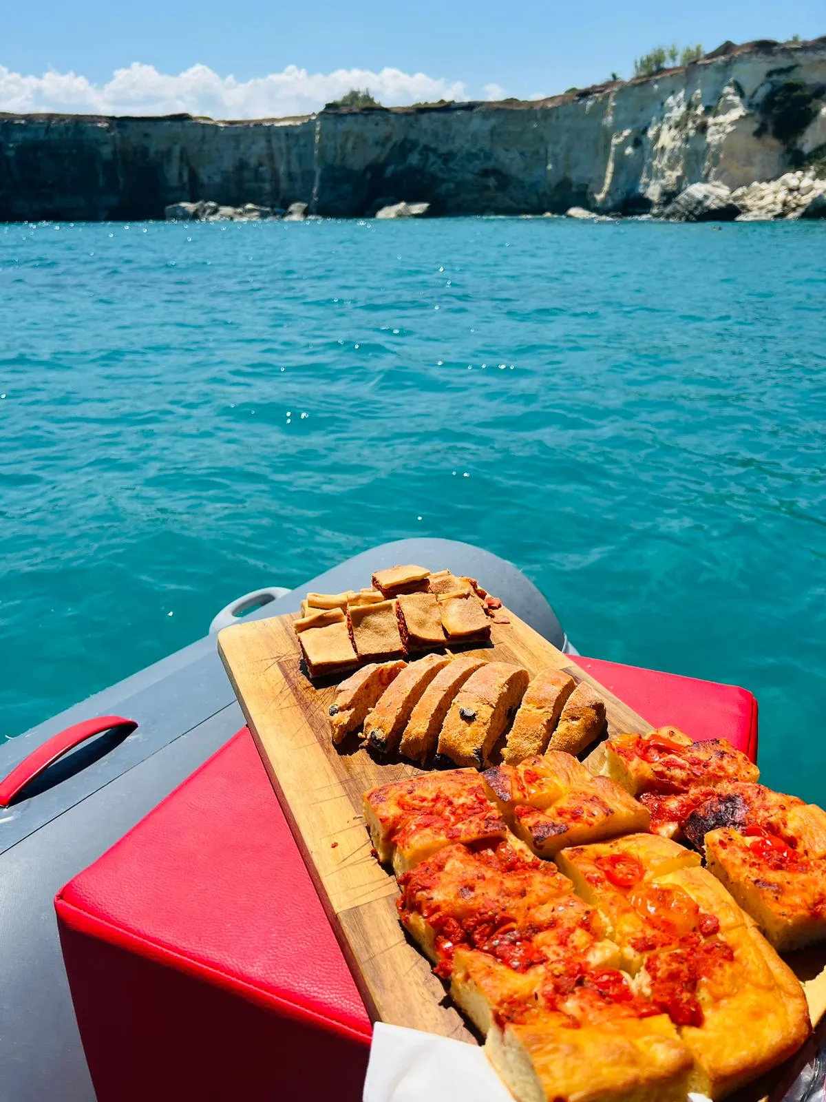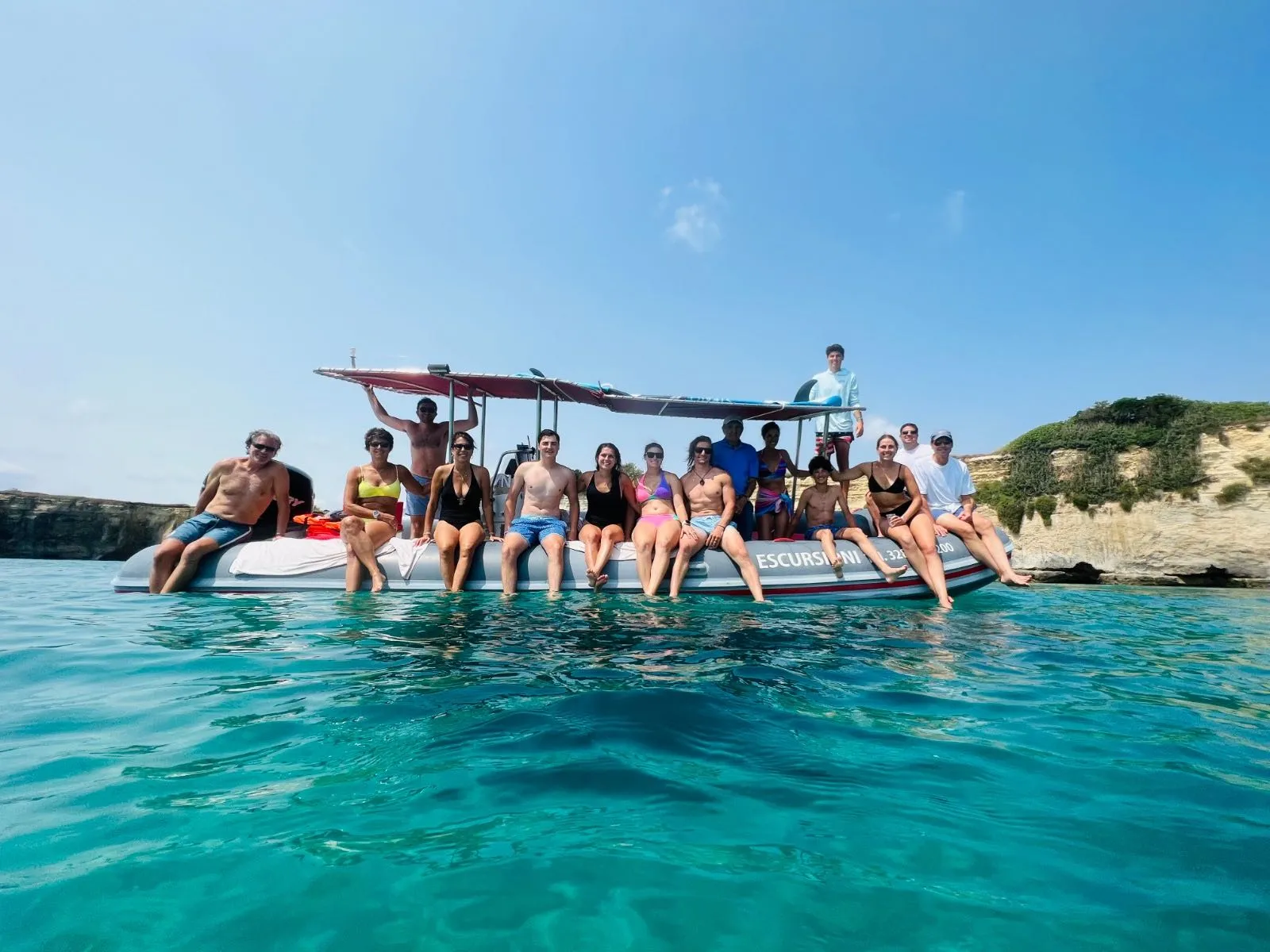 Escursione di gruppo in gommone alla scoperta della costa del Salento, partendo da San Foca e navigando fino a Otranto guidati da uno skipper esperto.