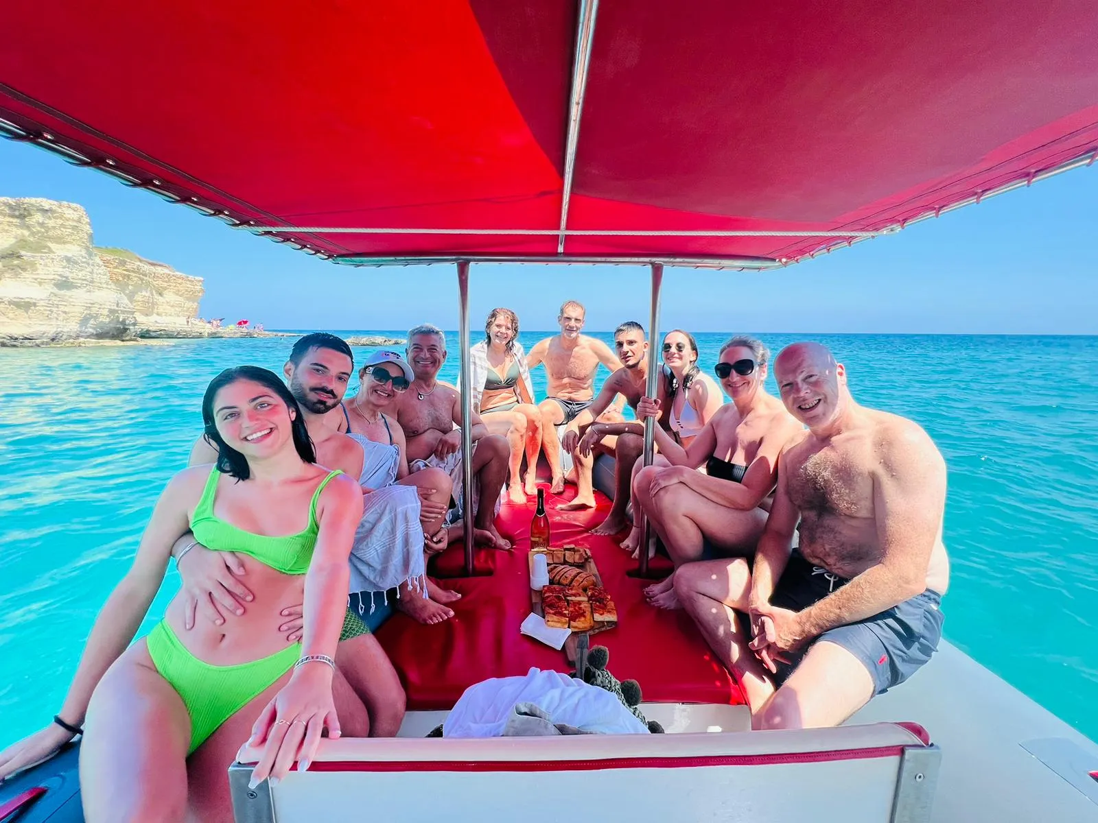 Partirete da San Foca e vi dirigerete verso Roca e le rovine in cui è presente un sito archeologico. Passerete dalla Grotta della Poesia in cui sarà possibile fare un primo bagno in mare prima di proseguire verso la Torre dell'Orso. Successivamente visiterete le Due Sorelle in cui potrete fare un'ulteriore sosta per il bango in mare con snorkeling per ammirare i fondali marini. Infine, passerete dai Faraglioni di Sant'Andrea prima di rientrare a San Foca.