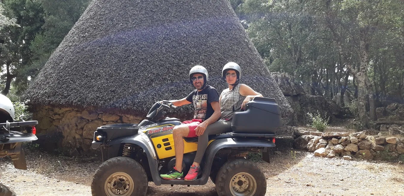Dopo aver noleggiato il quad seguirete un percorso fantastico e divertente all'insegna dell'off-road e dello sport tra gusto e natura attraverso le strade sterrate dei Tacchi immersi nella natura selvaggia ed incontaminata dell'Ogliastra. Visiterete un'area picnic dove vi imbatterete in Su Barraccu (la vecchia casa del pastore), le famose cascate di lequarci i vari punti panoramici ad altezza di circa 1000mt.