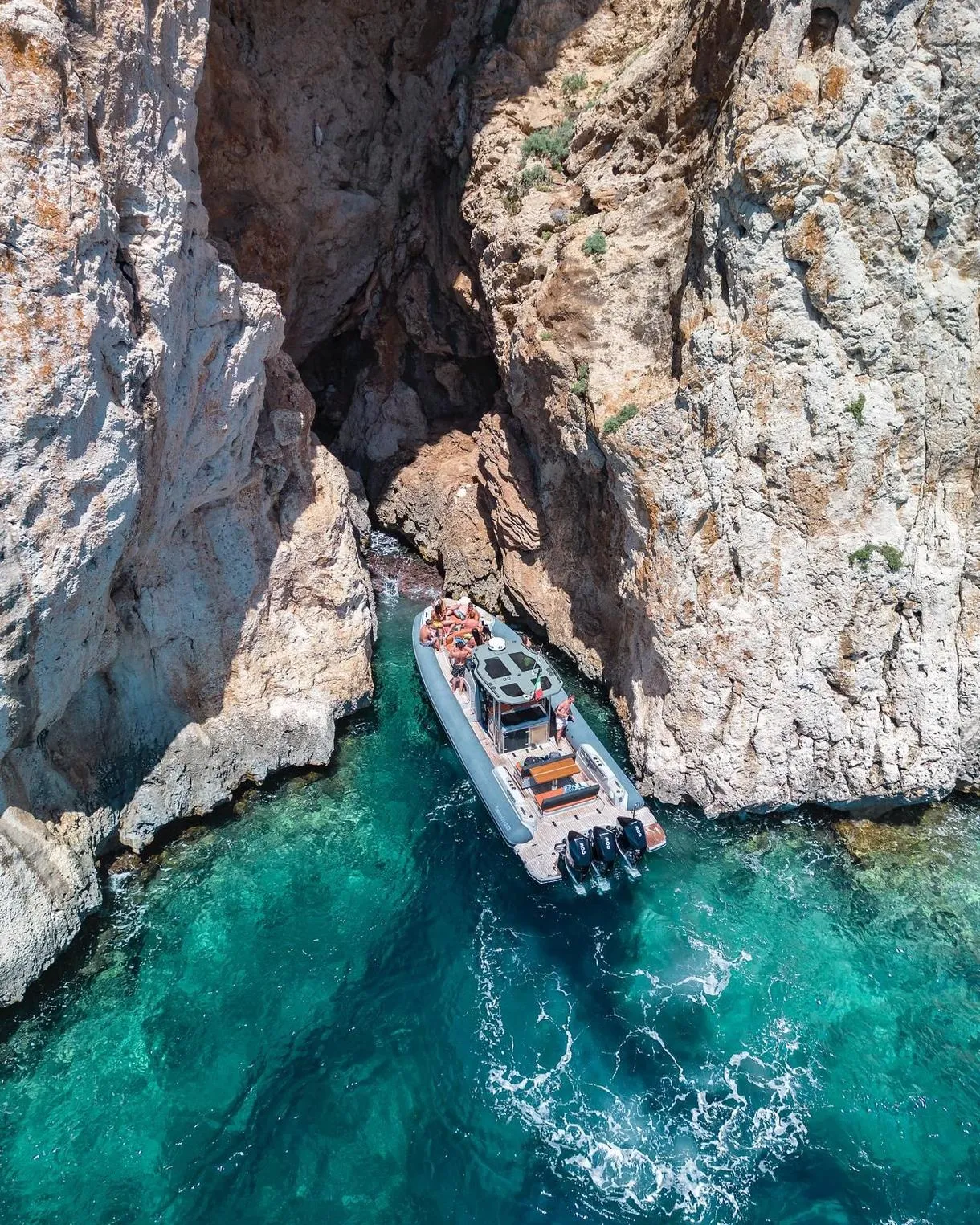Questa escursione in gommone di gruppo con partenza da Olbia vi permette di visitare l'area protetta di Tavolara e Molara in compagnia di amici o famiglia.