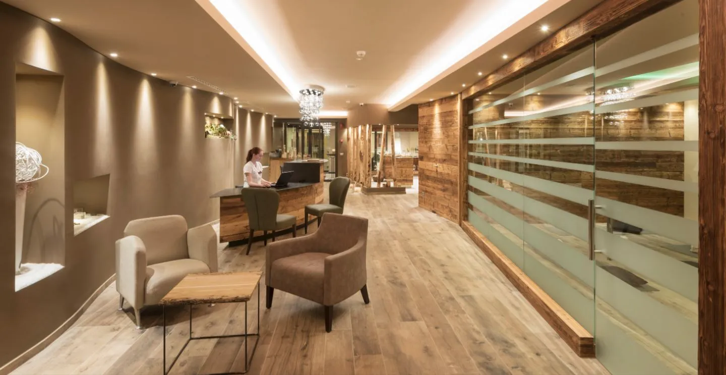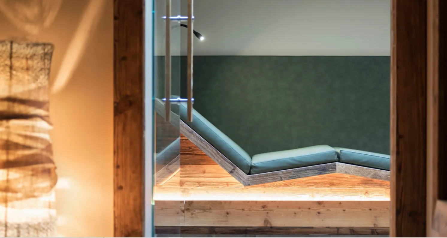 Un’ariosa piscina coperta in cui immergersi ed abbandonarsi al relax, con vista da sogno sull’idilliaco scenario alpino, lettini per massaggi, impianto per nuoto controcorrente e idromassaggio. Sale relax, arredate con legno locale e materiali naturali.