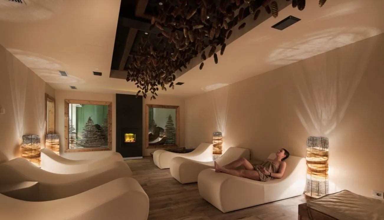 Una straordinaria piscina di acqua salata che contiene una grande varietà di minerali come lo iodio, il potassio e il magnesio; l’acqua salata rafforza il sistema immunitario e rinvigorisce la pelle. Potrete scegliere tra la sauna finlandese, l’hammam, o la biosauna. Ogni giorno vengono utilizzate essenze di una pianta alpina diversa.