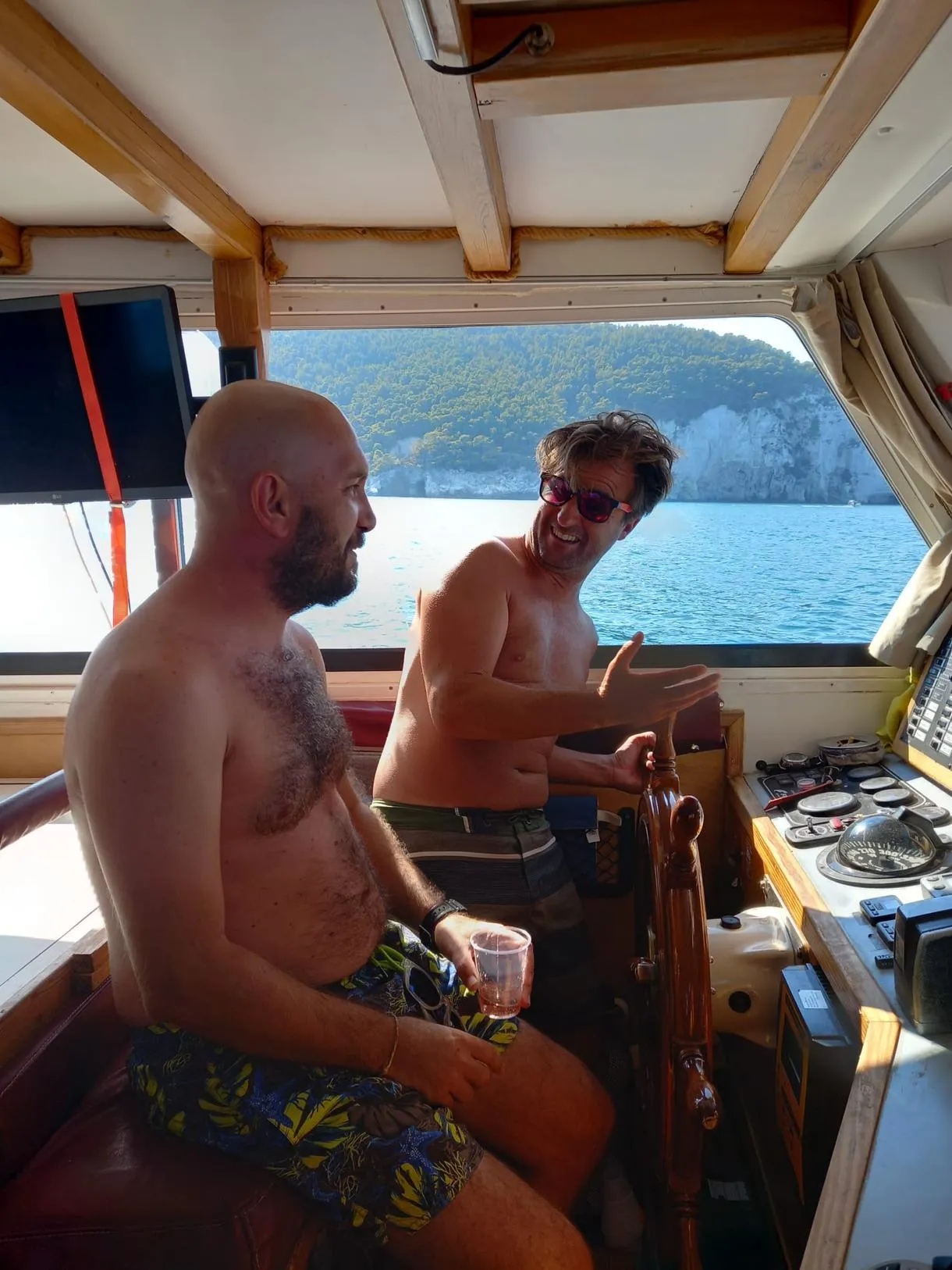 La particolarità di quest'imbarcazione è che presenta, a bordo, una cucina in cui saranno preparati piatti freschi e a base di prodotti locali. Infatti, vi verranno serviti un aperitivo e un pranzo a più portate compreso di vino e acqua.