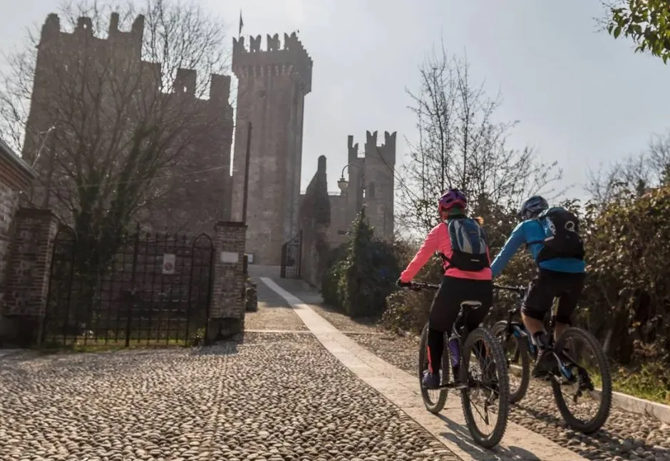 (mezza giornata - circa 40 km oppure giornata intera – circa 55 km): Questo tour ciclistico offre due opzioni: una mezza giornata di circa 40 km o una giornata intera di circa 55 km. Lungo il percorso, attraverserai i Borghi di Castellaro Lagusello e Borghetto di Valeggio S/M, entrambi inseriti tra i Borghi più belli d'Italia. Sarai accompagnato da una guida cicloturistica che ti condurrà attraverso strade alternative tra i vigneti e i dolci saliscendi delle Colline Moreniche, nonché tratti della famosa ciclabile "Mantova - Peschiera".