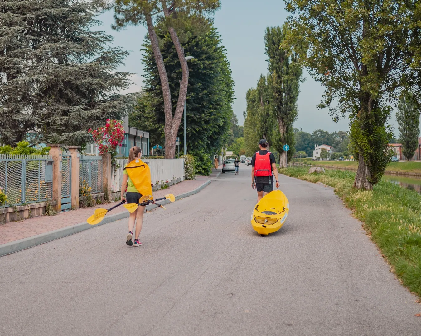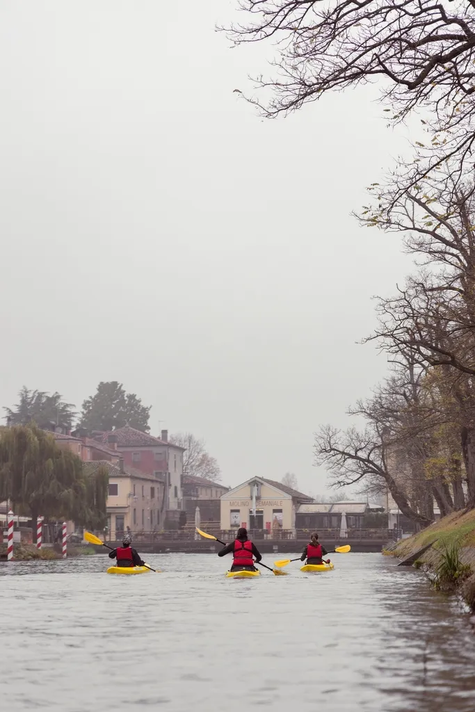 Giro in kayak a Dolo, un piccolo borgo caratteristico, con un bellissimo mulino. Il fiume ha una corrente molto dolce ed è quindi adatto per tutti, anche ai principianti e ai bambini da 12 anni in su.