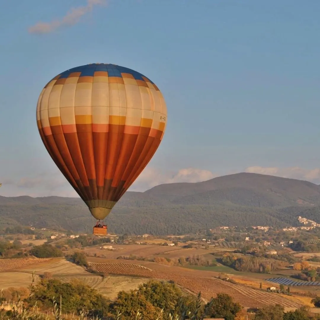 Il volo panoramico in mongolfiera condiviso su Roma e le campagne umbro-romane è un'esperienza indimenticabile che vi permetterà di sorvolare i suggestivi paesaggi che caratterizzano le colline Laziali.