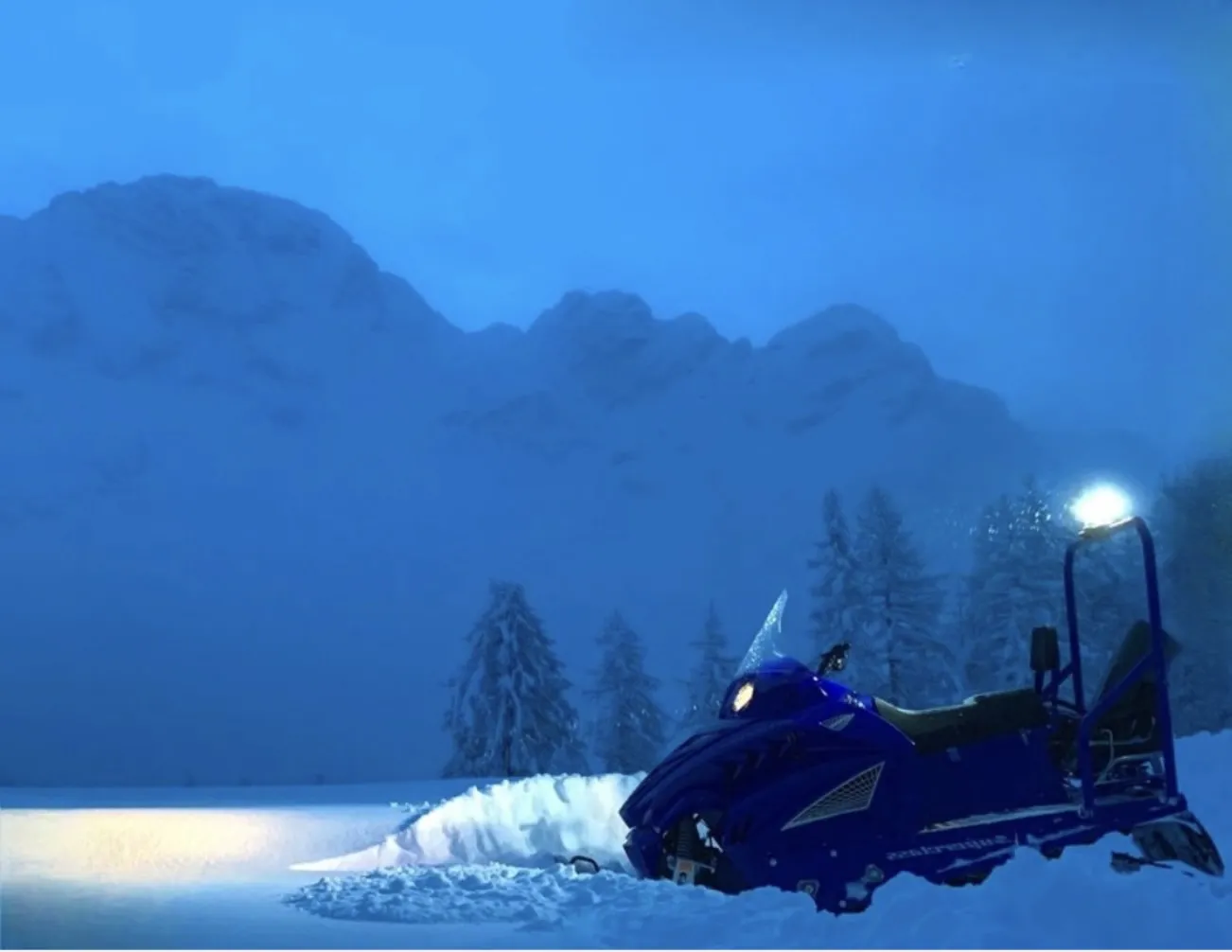 Giro in motoslitta serale con drink in rifugio sulle Dolomiti a Zoldo Alto