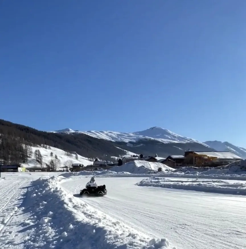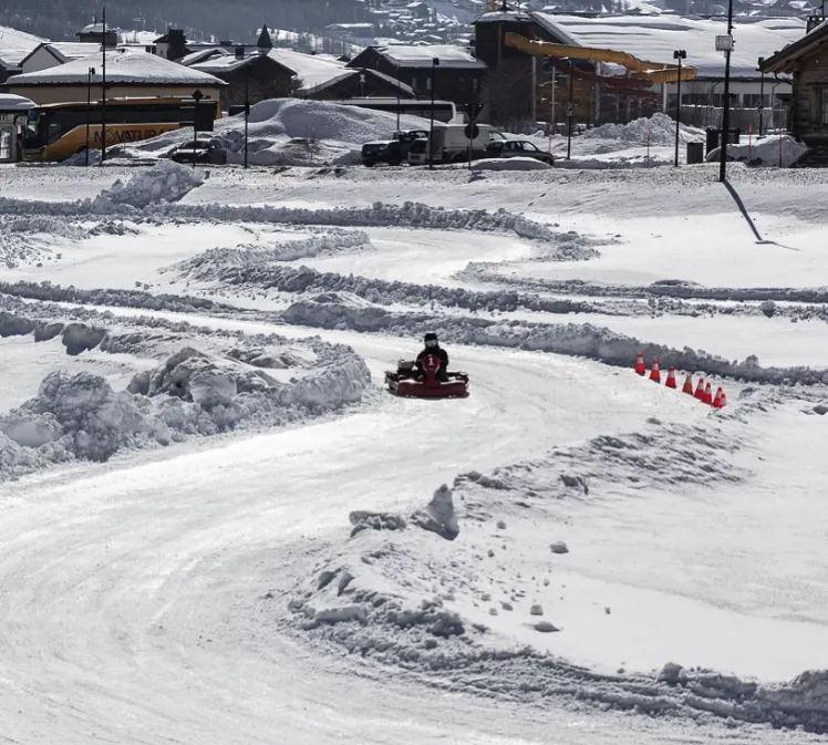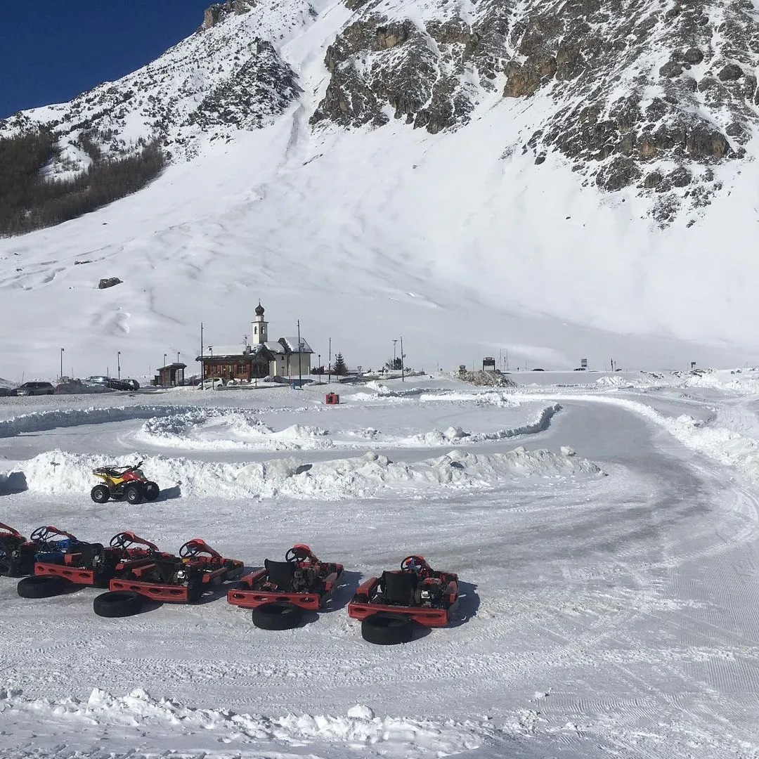 Il giro in pista con gli ice-kart a Livigno è un'occasione unica per sifdare i vostri amici in una corsa adrenalinica alla guida di un go kart su una pista ghiacchiata.