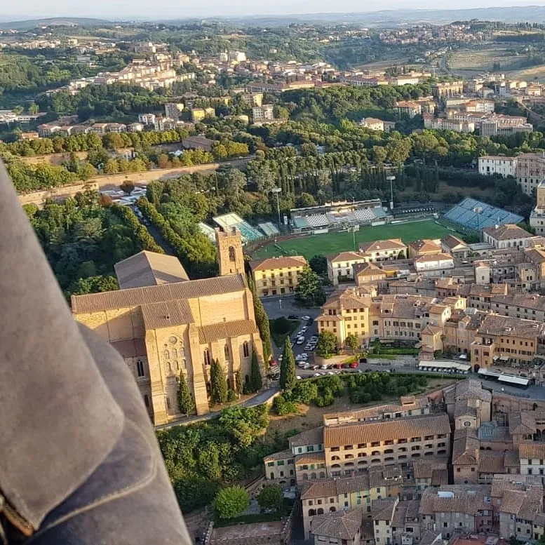 Durante il volo potrete ammirare il Duomo di Siena, la famosa Piazza Campo e su tutta la campagna senese circostante.