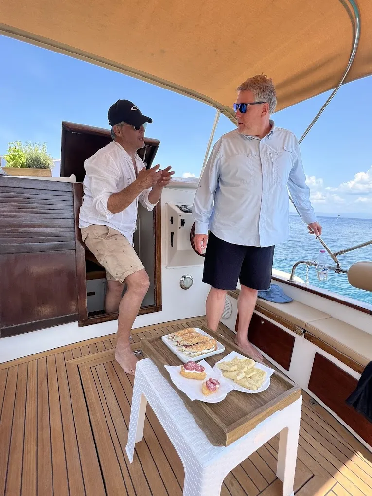 Il tour pomeridiano ha inizio al porto di Scarlino alle ore 16:00. La prima tappa sarà Cala Violina, dove ancorerete per una sosta bagno. Successivamente, visiterete le altre calette lungo il tratto di costa del parco, tra cui Cala Martina e Cala Civetta. Vi verrà offerto un aperitivo composto esclusivamente da prodotti toscani: un vino bianco di qualità, ottimi salumi, focacce e frutta fresca. Soprattutto nel pomeriggio, l'itinerario potrebbe subire variazioni a seconda delle condizioni meteo marine.