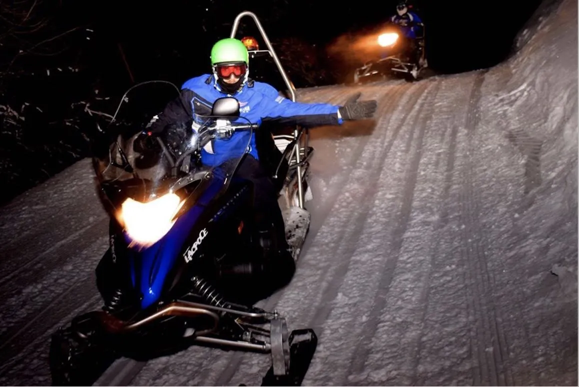 Un'escursione panoramica di un'ora guidando la motoslitta con partenza alle 17:30 sui percorsi innevati tra i boschi. Al termine del tour, sarete accompagnati direttamente in sella a una motoslitta fino al rifugio situato sulle piste da sci di Sestriere.