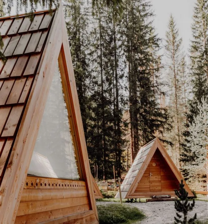 La A-Frame Cabin è una struttura semplice in legno che crea un ambiente caldo e intimo. La cabina è dotata di una parete a vetrata che vi permetterà una vista sulla natura circostante, un letto matrimoniale e un piccolo porticato esterno privato. I servizi igienici non sono privati, sono situati all'interno della struttura principale, dotati di doccia in condivisione.
