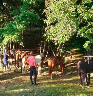 Per l'escursione a cavallo vi verrà fornita tutta l’attrezzatura necessaria per montare a cavallo, caschetto compreso. L’abbigliamento consigliato comprende scarpe chiuse e pantaloni lunghi.