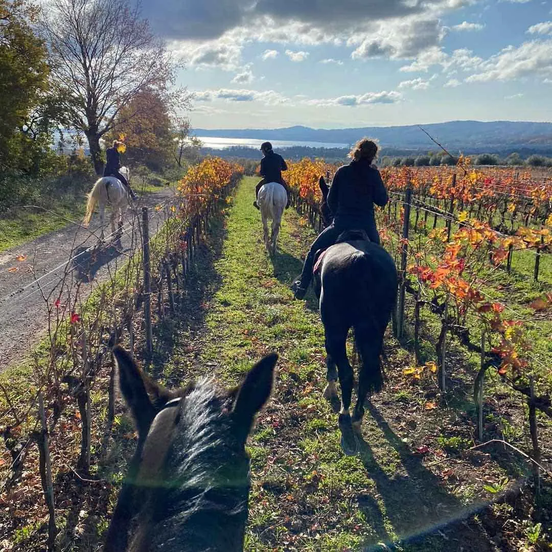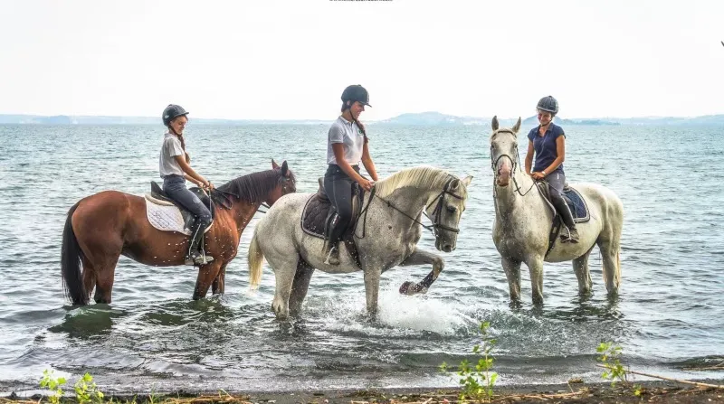 La passeggiata a cavallo lungo le rive del lago di Bolsena tra le tombe etrusche può avere una durata di cira 1h e 30min o di 2 ore, a vostra scelta.
