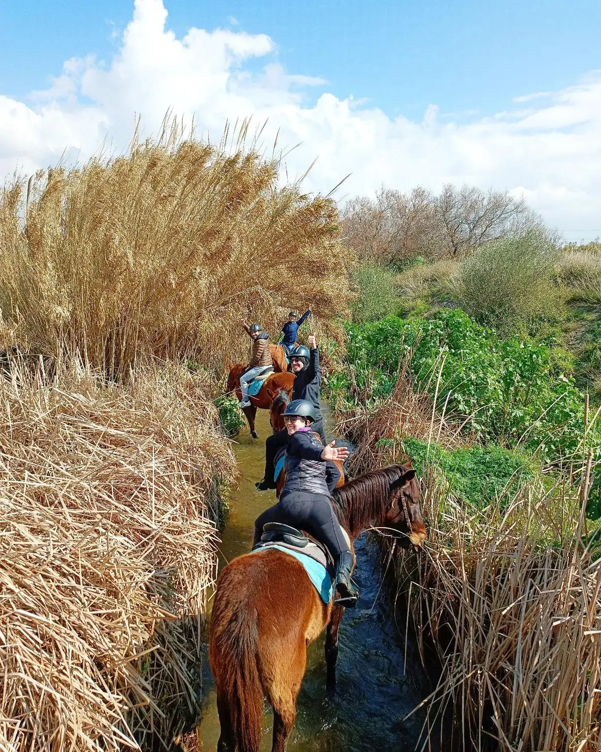 Scendendo a valle, il giro a cavallo vi porterà sulla laguna di Sant’Antioco, dove entrerete in acqua con i cavalli, cavalcando tra terreni paludosi e spettacolari canneti, che offrono un habitat ideale per una vasta fauna.