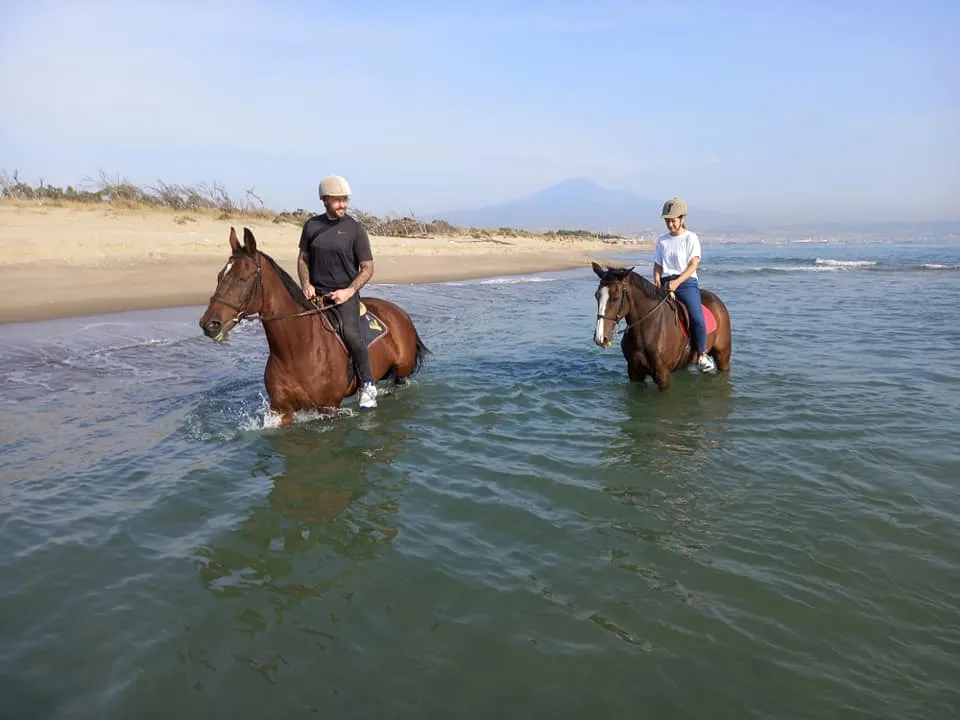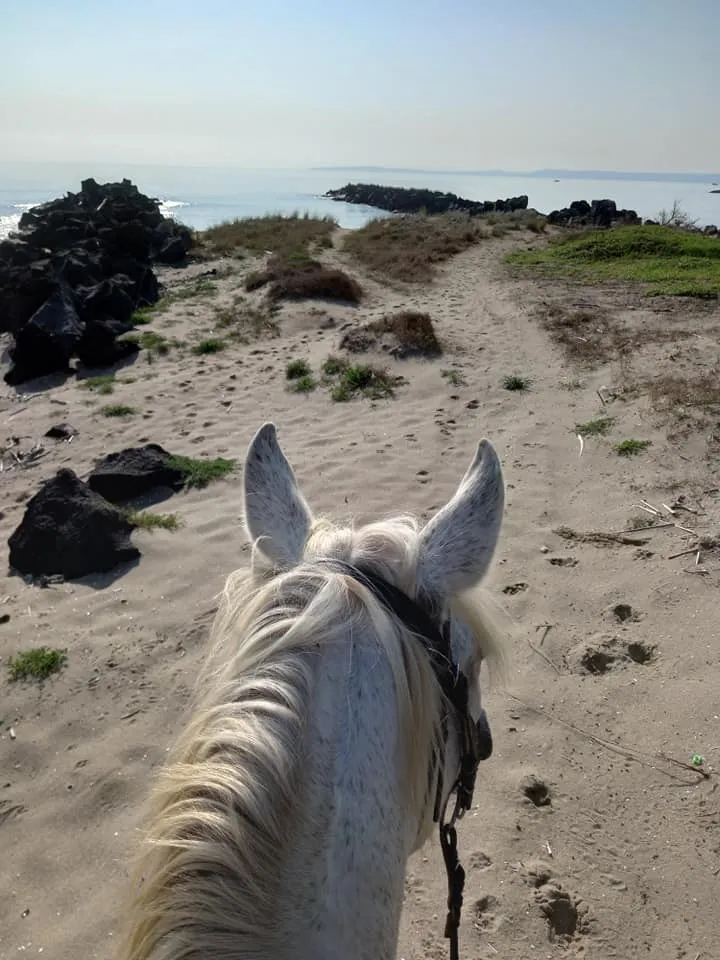 L'escursione a cavallo, della durata di un’ora, parte dal maneggio e si svolge sul bagnasciuga della lunga spiaggia nel golfo di Catania: la Plaja.