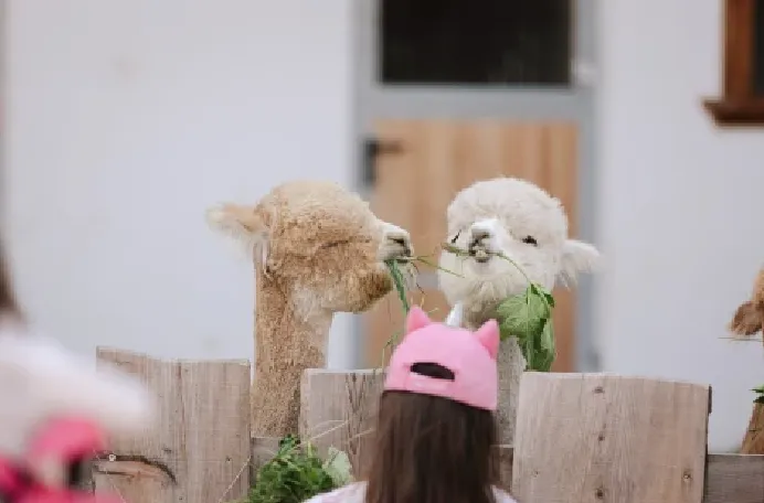- I bambini sotto i 10 anni devono condurre l'alpaca con una doppia corda insieme ad un adulto. Al massimo un accompagnatore per bambino.