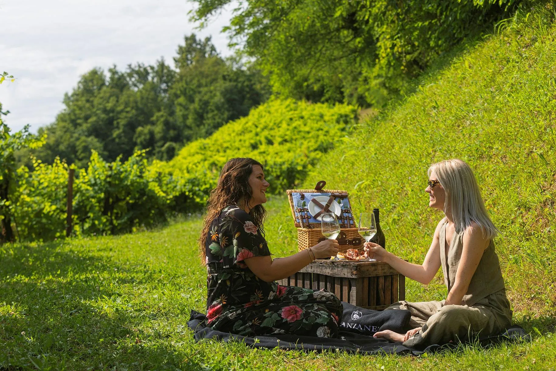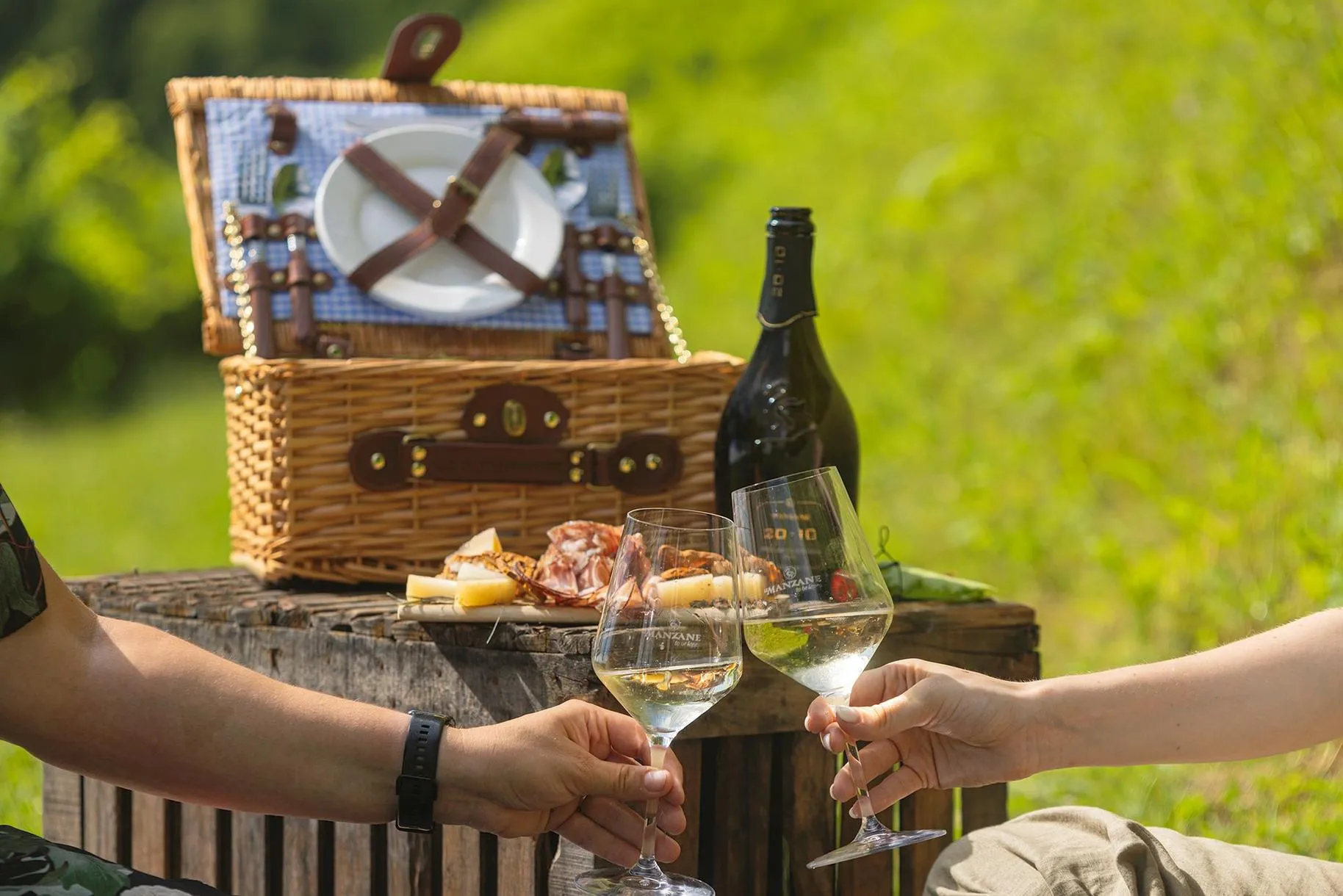In caso di maltempo o terreno impraticabile, il picnic si svolgerà in sala degustazione con vista sul vigneto.